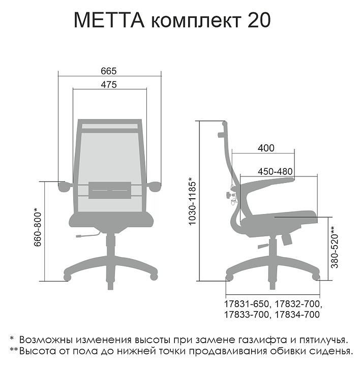 Кресло Метта Комплект 20 предназначено для долгой работы за компьютером на даче, дома, а также в офисах. Модель оснащена низкой спинкой и мягким объемным сиденьем на столярном каркасе. Сверхпрочный каркас кресла и регулируемый поясничный подпор изготовлены из стали с полимерным покрытием черного цвета, обивка - из износостойкой обивочной сетчатой ткани. Пятилучье в комплект поставки не входит и приобретается отдельно. Особенности: