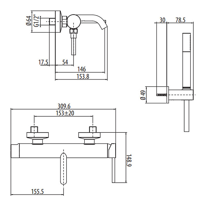Смеситель для ванны с душем Gattoni Circle Two 9100/91NO предназначен для использования в ванных помещениях для подачи горячей и холодной воды. Дополнительные характеристики: