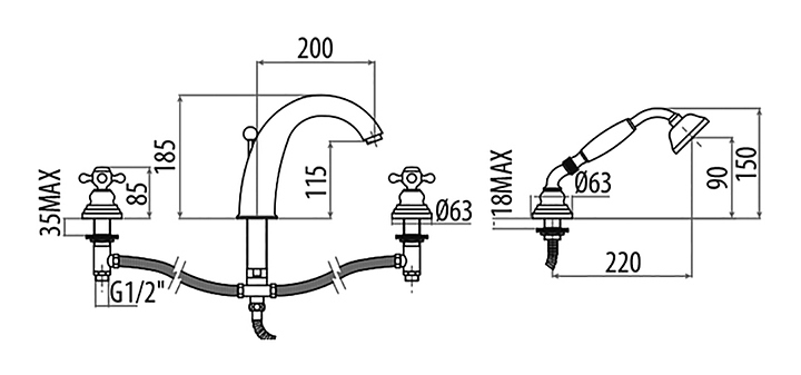 Смеситель для ванны с душем Gattoni Vivaldi 1240012С0cr предназначен для использования в ванных помещениях для подачи горячей и холодной воды. Особенности: