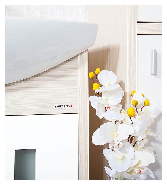 Тумба под раковину БРИКЛАЕР Бали 60 см напольная, светлая лиственница/белый глянец
