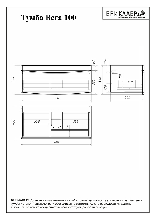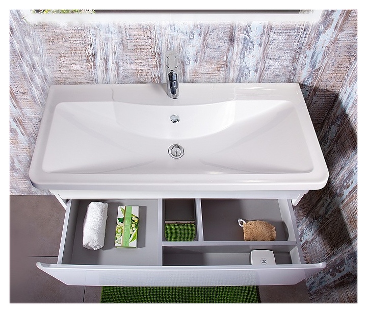 Тумба под раковину БРИКЛАЕР Вега 100 см подвесная, белый глянец