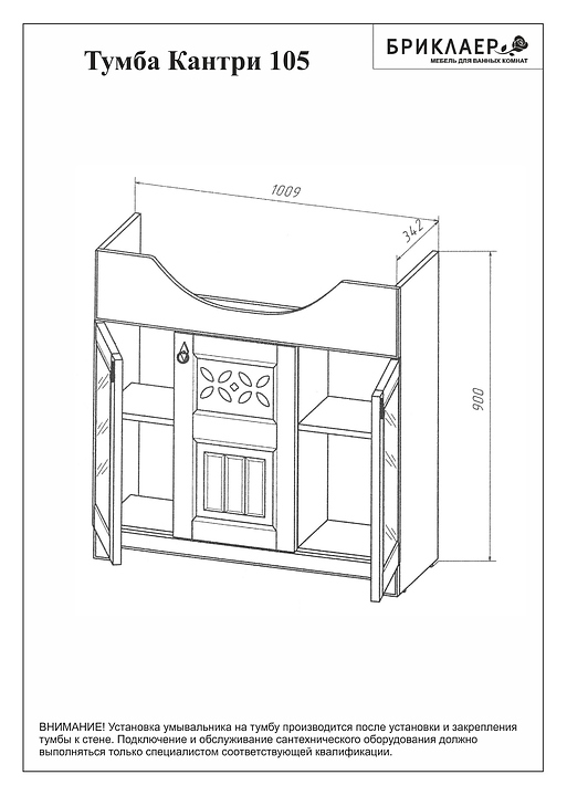 Тумба БРИКЛАЕР Кантри 105 выполнена в стиле прованс. Благодаря декоративной отделке прорезями филёнчатых фасадов мебель станет украшением любой ванной комнаты. Модель оснащена 3 распашными дверцами и 2 отделениями с полками для хранения ванных принадлежностей. Корпус мебели выполнен из влагостойкой ламинированной ДСП, обладающей устойчивыми свойствами к восприятию агрессивной влажной среды ванной комнаты, фасад - из МДФ. Может использоваться в комплекте с раковиной Классик 105. Особенности: