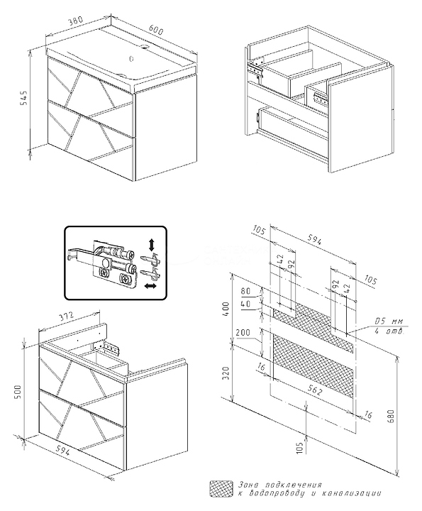 Тумба БРИКЛАЕР Кристалл 60 выполнена в современном стиле. Благодаря подвесной конструкции изделие не занимает много места, позволяет экономить пространство и облегчает уборку. Модель оснащена 2 выдвижными ящиками с нажимным механизмом открывания. Корпус выполнен из ЛДСП, фасад - из МДФ с пленкой ПВХ. Может использоваться в комплекте с раковиной MODUO SLIM 60. Особенности: