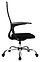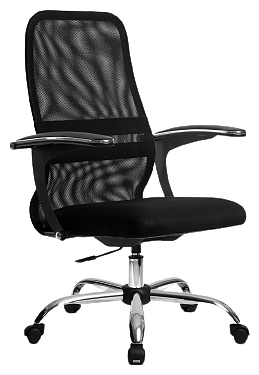 Кресло Метта SU-CM-8P предназначено для долгой работы за компьютером на даче, дома, а также в офисах. Модель оснащена низкой спинкой, комфортным сиденьем на столярном каркасе и подлокотниками "Бумеранг" . Сверхпрочный каркас кресла и изготовлен из стали с черным полимерным покрытием, обивка - из мягкой износостойкой обивочной сетчатой ткани без прошивки, подлокотники - из стали с полимерным покрытием черного цвета, c хромированным молдингом и мягкими накладками из экокожи. Основание в комплект поставки не входит и приобретается отдельно. Особенности: