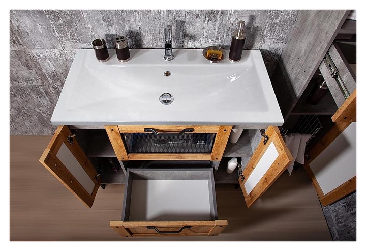 Тумба под раковину БРИКЛАЕР Лофт 100 см напольная, дуб золотой, метрополитен грей