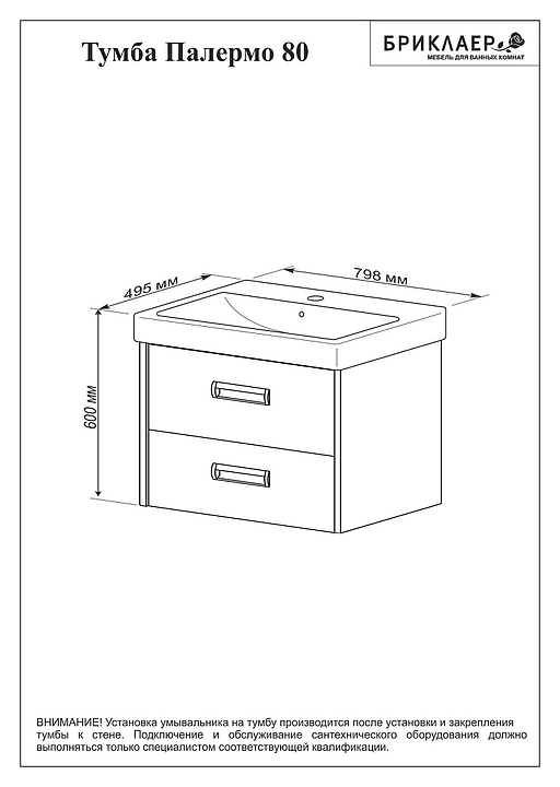 Тумба под раковину БРИКЛАЕР Палермо 80 см подвесная, белый глянец