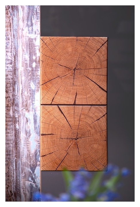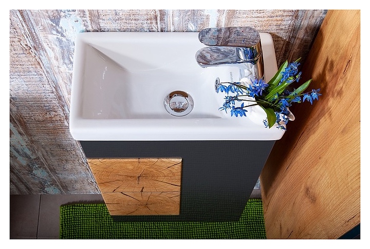 Тумба под раковину БРИКЛАЕР Форест 40 см подвесная, дуб золотой, антрацит, вставки с рисунком "пенёк"