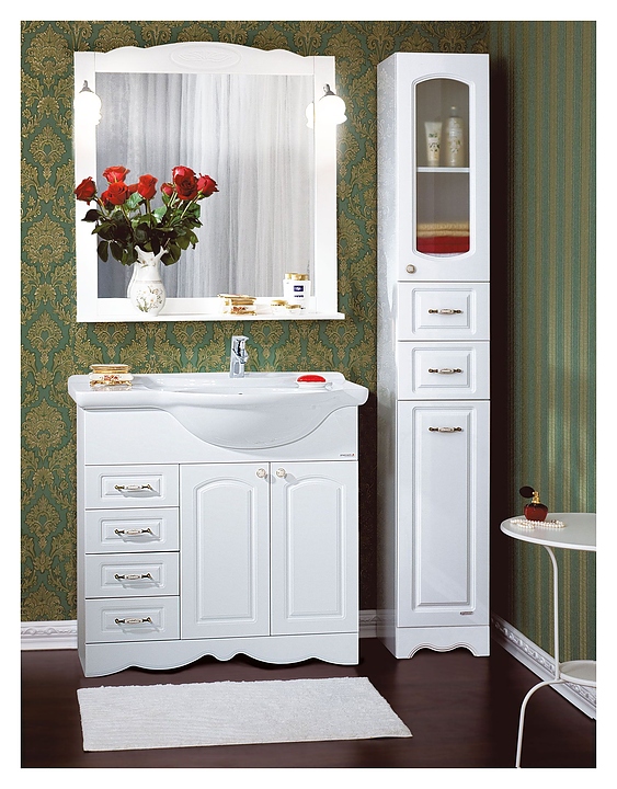 Зеркало БРИКЛАЕР Анна 100 выполнено в неоклассическом стиле и отлично дополнит интерьер любой ванной комнаты. Благодаря подвесной конструкции модель не занимает много места, что позволяет экономить пространство в небольшой ванной комнате. Модель оснащена 2 светильниками и открытой полочкой. Корпус выполнен из ламинированной влагостойкой ДСП, фасад - из МДФ с пленкой ПВХ, зеркальное полотно покрыто серебром с амальгамой, благодаря чему в период эксплуатации зеркало не деформируется, а отражение не искажается. В комплект поставки входят навески для крепления к стене, 2 светильника и электрический провод 0.5 м для подключения к электросети 220 В. Особенности: