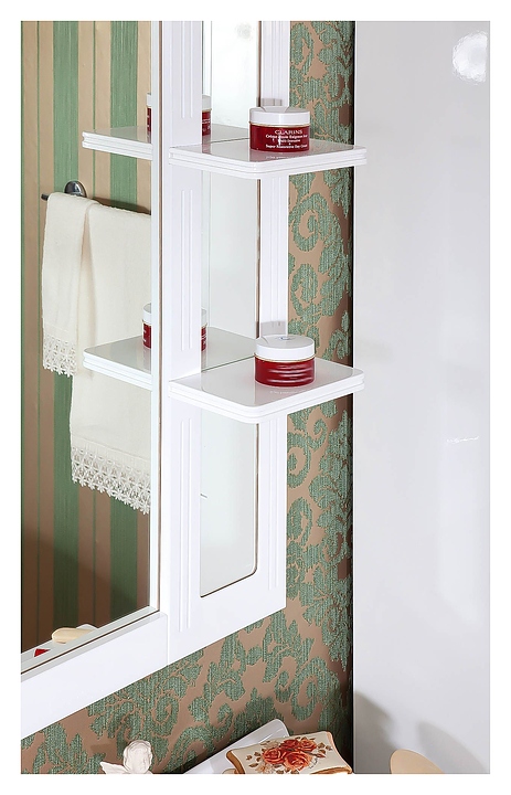 Зеркало БРИКЛАЕР Анна 120 выполнено в неоклассическом стиле и отлично дополнит интерьер любой ванной комнаты. Благодаря подвесной конструкции модель не занимает много места, что позволяет экономить пространство в небольшой ванной комнате. Модель оснащена 2 светильниками и 4 открытыми полочками по бокам. Корпус выполнен из ламинированной влагостойкой ДСП, фасад - из МДФ с пленкой ПВХ, зеркальное полотно покрыто серебром с амальгамой, благодаря чему в период эксплуатации зеркало не деформируется, а отражение не искажается. В комплект поставки входят навески для крепления к стене, 2 светильника и электрический провод 0.5 м для подключения к электросети 220 В. Особенности: