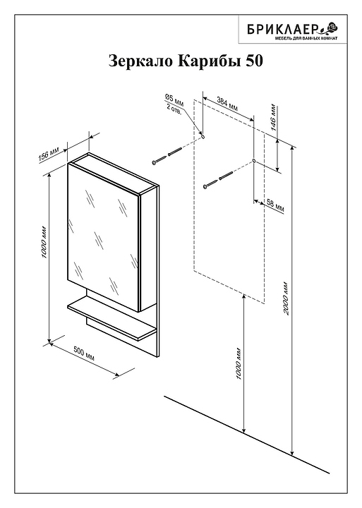 Зеркальный шкаф БРИКЛАЕР Карибы 50 выполнен в эко-стиле и отлично дополнит интерьер любой ванной комнаты. Модель оснащена закрытым шкафчиком и открытой полочкой для хранения ванных принадлежностей. Благодаря подвесной конструкции модель не занимает много места, что позволяет экономить пространство в небольшой ванной комнате. Фасад и корпус мебели выполнен из ЛДСП, отличающейся влагостойкостью, прочностью, устойчивостью к перепадам температурных режимов, способностью сохранять цвет и форму изделия в первозданном виде длительный срок, фурнитура - из хромированного металла. Зеркальное полотно покрыто серебром с амальгамой. В комплект поставки входят навески для крепления к стене и петли с доводчиками. Особенности: