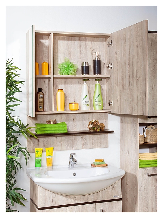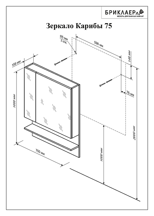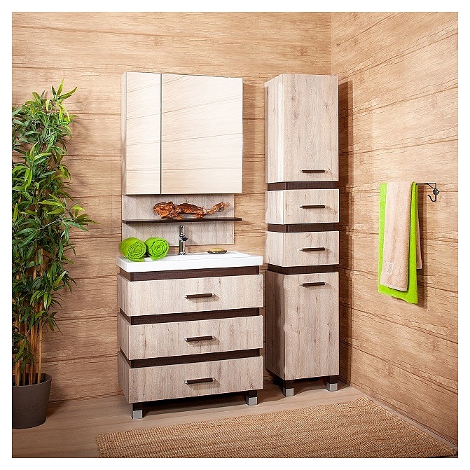 Зеркальный шкаф БРИКЛАЕР Карибы/Техас 75 выполнен в эко-стиле и отлично дополнит интерьер любой ванной комнаты. Модель оснащена закрытым шкафчиком с 2 распашными дверцами и отделениями для хранения ванных принадлежностей, а также открытой полочкой. Благодаря подвесной конструкции модель не занимает много места, что позволяет экономить пространство в небольшой ванной комнате. Фасад и корпус мебели выполнен из ЛДСП, отличающейся влагостойкостью, прочностью, устойчивостью к перепадам температурных режимов, способностью сохранять цвет и форму изделия в первозданном виде длительный срок, фурнитура - из хромированного металла. Зеркальное полотно покрыто серебром с амальгамой. В комплект поставки входят навески для крепления к стене и петли с доводчиками. Особенности: