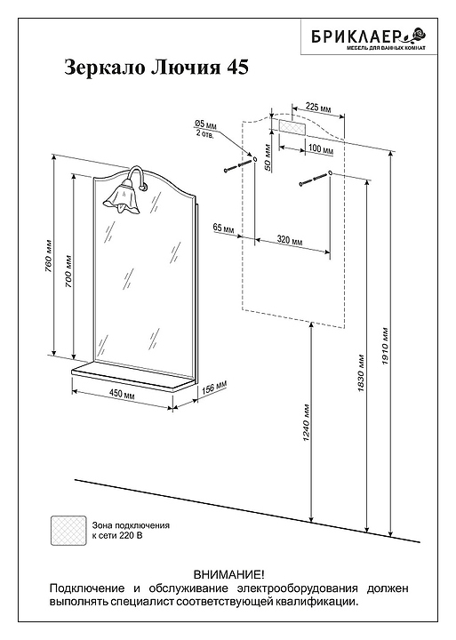 Зеркало БРИКЛАЕР Лючия 45 выполнено в неоклассическом стиле и отлично дополнит интерьер любой ванной комнаты. Модель оснащена светильником с изящным плафоном в форме цветка и открытой полочкой для хранения ванных принадлежностей. Благодаря подвесной конструкции модель не занимает много места, что позволяет экономить пространство в небольшой ванной комнате. Корпус и фасад выполнены из МДФ с пленкой ПВХ, зеркальное полотно покрыто серебром с амальгамой. В комплект поставки навески для крепления к стене, светильник с плафоном и электрический провод 0,5 м для подключения к электросети 220 В. Особенности:
