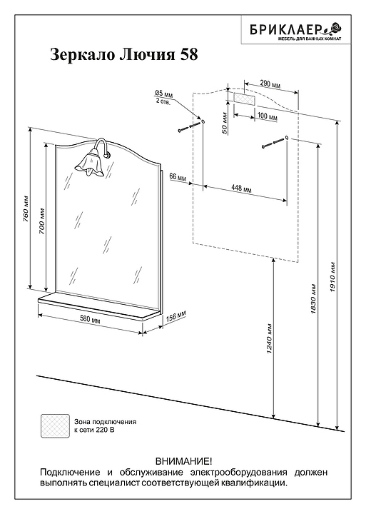 Зеркало БРИКЛАЕР Лючия 58 выполнено в неоклассическом стиле и отлично дополнит интерьер любой ванной комнаты. Модель оснащена светильником с изящным плафоном в форме цветка и открытой полочкой для хранения ванных принадлежностей. Благодаря подвесной конструкции модель не занимает много места, что позволяет экономить пространство в небольшой ванной комнате. Корпус и фасад выполнены из МДФ с пленкой ПВХ, зеркальное полотно покрыто серебром с амальгамой. В комплект поставки навески для крепления к стене, светильник с плафоном и электрический провод 0,5 м для подключения к электросети 220 В. Особенности:
