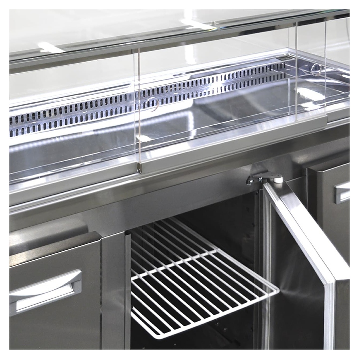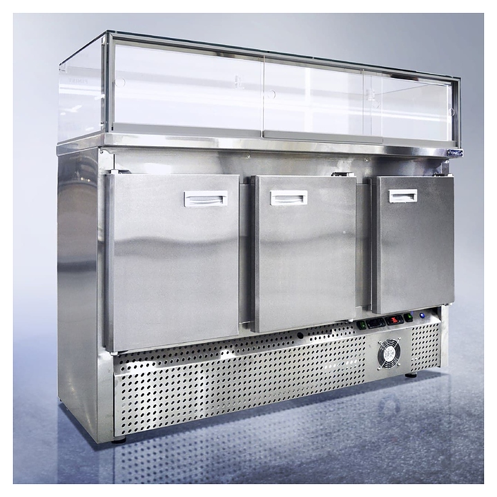 Напольная кондитерская витрина Finist SPLINTER Sс-158-127 предназначена для экспозиции и хранения тортов, десертов и других кондитерских изделий на предприятиях общественного питания и торговли. Модель оснащена экспозиционной камерой с дверцами-купе,3 холодильными камерами с распашными дверцами и решетчатыми полками, 4 ножками, кабелем питания с вилкой и кнопочной панелью управления с цифровым дисплеем и светодиодными лампами индикации. Корпус агрегата выполнен из высококачественной нержавеющей стали, экспозиционные панели камеры – из прочного стекла, дверцы-купе – из органического стекла. Особенности:
