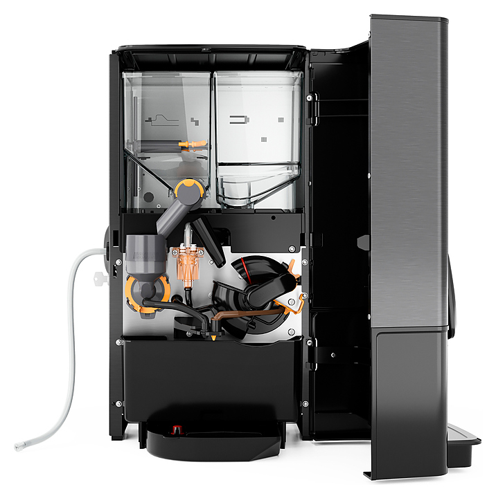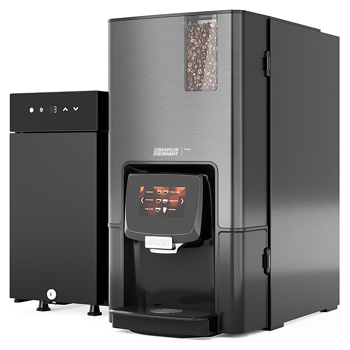 Автоматическая кофемашина Bravilor Bonamat Sego 11L используется в офисах, на предприятиях общественного питания и торговли для приготовления кофе эспрессо, без кофеина, двойного эспрессо, латте, макиато, моккачино, горячего шоколада и других напитков. Модель оснащена сенсорным экраном с опциями настройки температуры воды, помола кофе и времени контакта. Диски кофемолки выполнены из нержавеющей стали. Холодильник для молока в комплект поставки не входит и приобретается отдельно. Рекомендуется дополнительно приобрести водоумягчитель и фильтр-систему для очистки и смягчения воды. Особенности:
