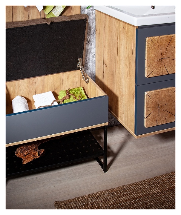 Банкетка БРИКЛАЕР Форест выполнена в стиле эко и отлично дополнит интерьер любой ванной комнаты. Модель оснащена опорным металлическим каркасом со стационарной металлической полкой для обуви, откидной крышкой на кронштейнах и коробом для хранения ванных принадлженостей. Корпус выполнен из влагостойкой ЛДСП, отличающейся влагостойкостью, прочностью, устойчивостью к перепадам температурных режимов, способностью сохранять цвет и форму изделия в первозданном виде длительный срок, фурнитура - из металла. Особенности: