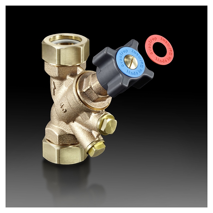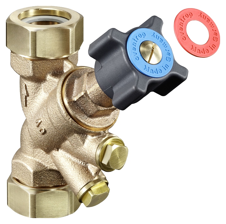 Запорный вентиль Oventrop Hydrocontrol ATR 1067616 используется в системах отопления и охлаждения с закрытым контуром для отключения трубопроводов, а также измерений расхода, температуры и перепада давления теплоносителя. Модель оснащена 2 резьбовыми патрубками с накидными гайками, рукояткой и 2 штуцерами с заглушками. Корпус и головка вентиля выполнены из бронзы (Rg 5), шток, золотник и заглушки – из стойкой к выщелачиванию цинка латуни (DZR), маховик – из черного пластика, уплотнение золотника – из мягкого политетрафторэтилена (PTFE), необслуживаемое двойное уплотнение штока – из этиленпропилендиен мономера (EPDM). В комплект поставки входят маркировочные кольца: красные – для подающей и синие – для обратной линии. Особенности: