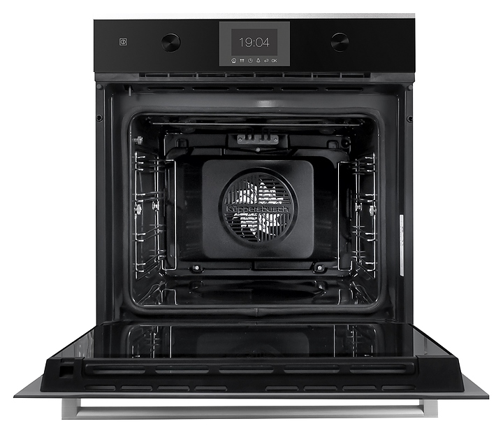 Электрический духовой шкаф Kuppersbusch BP 6350.0 S1 Stainless Steel предназначен для приготовления большого ассортимента блюд на предприятих общественного питания и торговли, гостиничных комплексах, а также в домашних условиях. Модель оснащена расположенными в задней стенке вентилятором и кольцевым нагревательным элементом, вместительной камерой с 5 уровнями размещения противней, съемной дверцей со смотровым окном, горизонтальной рукояткой, панелью управления с поворотными ручками, сенсорными кнопками и TFT-дисплеем с текстовым и графическим полями с индикацией белого цвета. Корпус выполнен из металла, рукоятка и внешние металлические элементы – из нержавеющей стали, ручки управления – из алюминия. В комплект поставки входят эмалированный противень для выпечки, решетка для жарки и универсальный эмалированный противень с функцией поддона. Особенности: