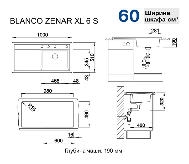 Мойка Blanco Zenar XL 6 S 526060 предназначена для рационального планирования рабочего места на кухне. Сбоку расположено большое практичное крыло и просторная площадка для установки смесителя. Клапан-автомат организовывает автоматический отвод воды из чаши мойки. Современный перелив C-overflow помогает контролировать уровень воды в чаше и препятствует ее вытекания через край. Чаша имеет закругленные углы для облегчения процесса очищения от загрязнений. Мойка изготовлена из керамики, разделочная доска - из черного закаленного стекла. В комплект поставки входит отводная арматура с клапаном-автоматом и разделочная доска. Особенности: