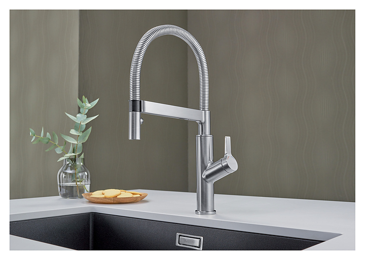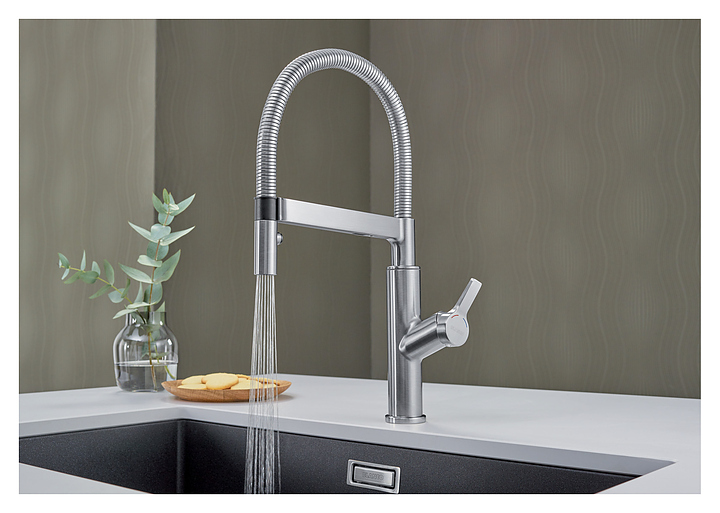 Смеситель Blanco Solenta-S Senso 522407 предназначен для использования на кухне для подачи горячей и холодной воды. Модель оснащена удобным рычагом, гибким изливом и душем с удобным магнитным держателем, функцией «старт-стоп» и керамическим картриджем. Однорычажный тип управления позволяет очень быстро и плавно регулировать подачу воды одной рукой. Изделие выполнено из высококачественной латуни, которая отличается прочностью, долговечностью и устойчивостью к перепадам температур, шланг с оплеткой из нержавеющей стали. Особенности: