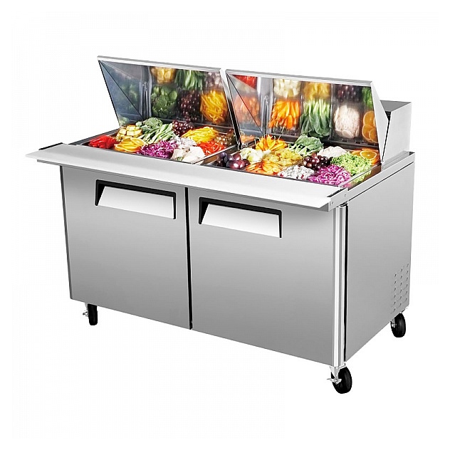 Холодильный стол Turbo air CMST-60-24 используется на предприятиях общественного питания и торговли для обработки ингредиентов, используемых для приготовления сэндвичей, охлаждения и кратковременного хранения продуктов. Модель оснащена эргономичными ручками и 4 колесами. Корпус и дверные петли выполнены из нержавеющей стали, пол - из нержавеющей стали с алюминевыми вставками по бокам и сзади, разделочная доска - из пищевого полиэтилена LDPE, уплотнение - из ABS пластика, полки - из стальной проволоки с виниловым покрытием. В комплект поставки входят гастроемкости GN 1/6 глубиной 150 мм Особенности: