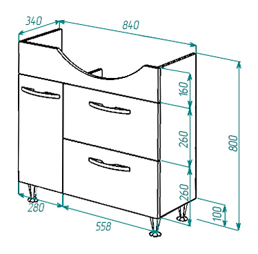 Тумба под раковину Bellezza Балтика 90 R дополнит интерьер ванной комнаты. Модель оснащена распашной дверцей, 2 ящиками и ножками, защищающими конструкцию в случае намокания пола. Корпус выполнен из влагостойкой ЛДСП, фасад - из МДФ. Изделие покрыто глянцевой эмалью для защиты поверхности от внешних воздействий. Тумба используется вместе с раковиной Dreja Балтика 90 R. Особенности: