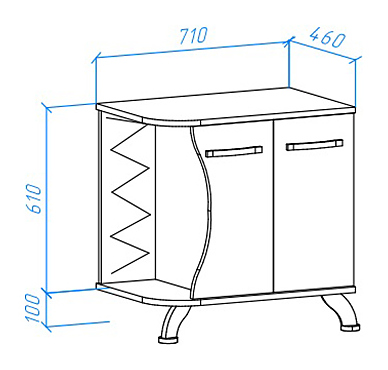 Тумба под раковину Bellezza Рио 70 L дополнит интерьер ванной комнаты. Тумба оснащена 2 дверцами, открытой стеклянной полкой в боковой части и ножками, защищающими конструкцию в случае намокания пола. Корпус выполнен из ЛДСП, фасад - из МДФ и зеркала. Изделие покрыто глянцевой эмалью для защиты поверхности от внешних воздействий. Тумба используется вместе с раковиной Kirovit Гамма 56. В комплект поставки входят доводчики. Дополнительные характеристики: