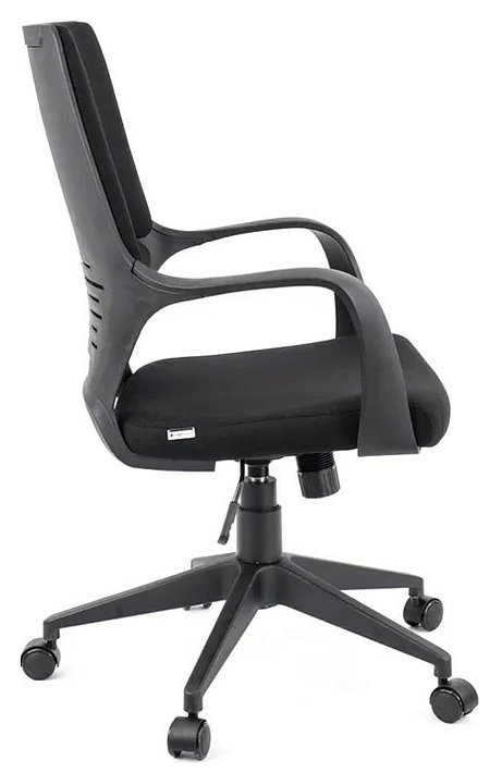 Офисное операторское кресло Everprof Trio Black LB T Ткань используется для персонала в офисах и квартирах. Модель оснащена поясничной поддержкой, пластиковыми подлокотниками и колесами - роликами для передвижения по паркету. Каркас кресла немонолитный, крестовина изготовлена из пластика, обивка - из ткани, набивка - вспененный полиуретан плотностью 22-25 кг/куб.м. Особенности: