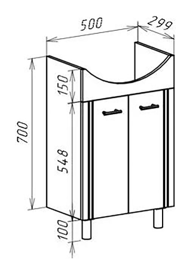 Тумба под раковину Bellezza Уют 55 дополнит интерьер ванной комнаты. Модель оснащена 2 дверцами и ножками, защищающими конструкцию в случае намокания пола. Корпус выполнен из ЛДСП, фасад - из МДФ. Изделие покрыто глянцевой эмалью для защиты поверхности от внешних воздействий. Тумба используется вместе с раковиной Rosa Уют 55. Дополнительные характеристики: