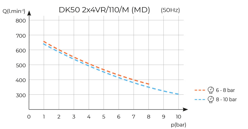 Компрессор Ekom DK50 2x4VR/110S/M (6-8 бар, 430 л/мин., 2x4 цилиндра, шумопоглощ. шкаф, осушитель)