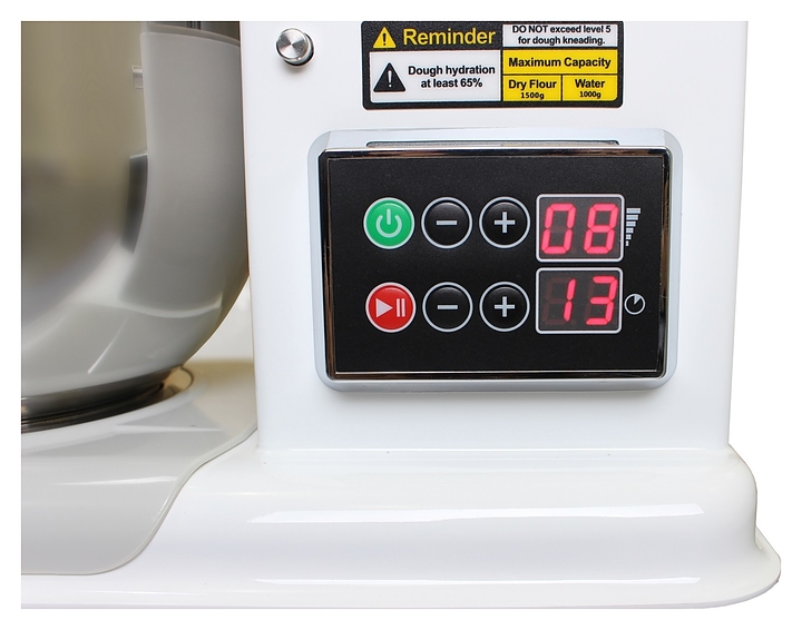 Планетарный миксер Danler MSR-7 предназначен для замешивания дрожжевого и бездрожжевого теста различной консистенции, взбивания яиц, сливок, кремов и муссов, приготовления пюре, фарша, соусов и других ингридиентов и блюд в кондитерских, пекарнях, на предприятиях общественного питания и торговли, а также в домашних условиях. Модель оснащена высокопроизводительным двигателем и электромеханической панелью управления с 2 цифровыми дисплеями. Дежа и насадки выполнены из высококачественной нержавеющей стали AISI 304, ручка дежи с пластиковой накладкой. В комплект поставки входят дежа с ручкой и крышкой, венчик, лопатка и крюк. Особенности: