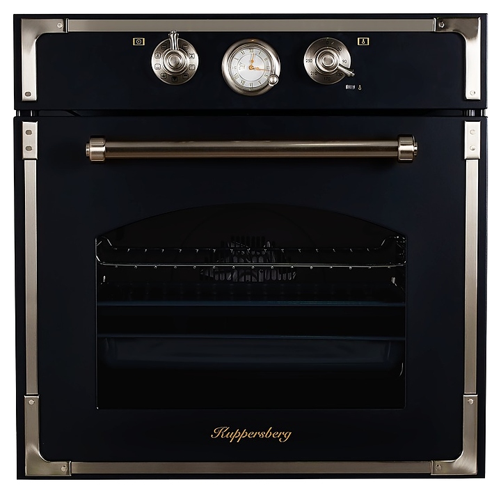 Электрический духовой шкаф Kuppersberg RC 699 ANX предназначен для приготовления большого ассортимента блюд в домашних условиях. Модель оснащена расположенным в задней стенке вентилятором, вместительной камерой, 2 съемными стойками с 5 уровнями направляющих для противней, герметичной дверью со смотровым окном, горизонтальной рукояткой, поворотными регуляторами и круглым циферблатом с римскими цифрами. Корпус выполнен из высококачественной стали с эмалированным покрытием и декоративной рамкой по периметру, фурнитура – из металла, направляющие с хромированным покрытием.