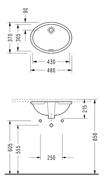 Раковина врезная под столешницу SEREL 0551 48х37х21,5 см, фарфор, белая