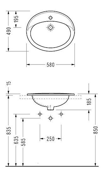 Раковина врезная на столешницу SEREL 1841 58х49х18,5 см, фарфор, белая