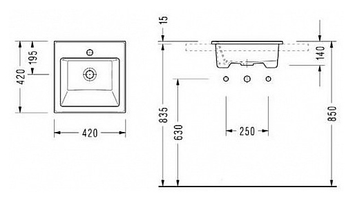 Раковина подвесная SEREL WASHBASIN 3014 42х42х14 см, фарфор, белая