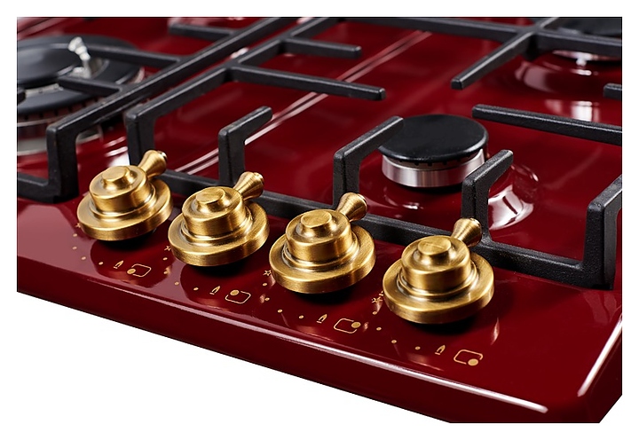 Варочная панель Kuppersberg FV6TGRZ BOR Bronze газовая, бордо с фурнитурой под бронзу
