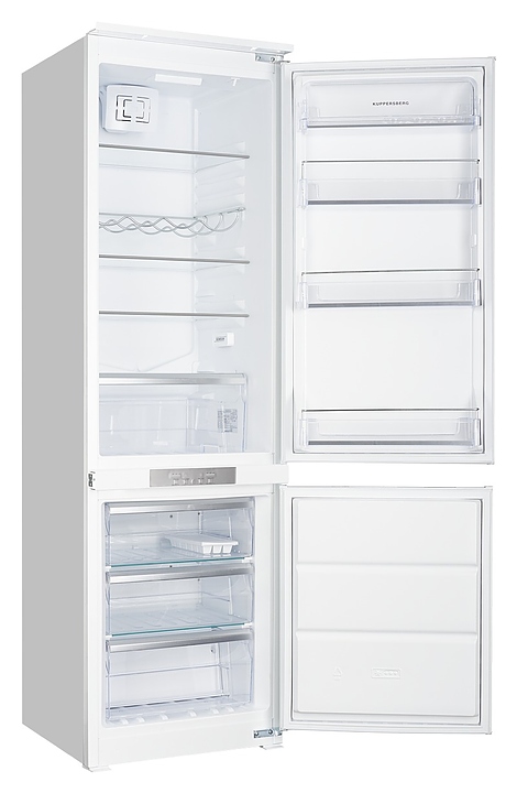 Холодильник Kuppersberg CRB 17762 предназначен для охлаждения, заморозки, кратковременного и длительного хранения пищевых продуктов и напитков на предприятих общественного питания и торговли, гостиничных комплексах, офисах, а также в домашних условиях. Модель оснащена холодильной и морозильной камерами с отдельными дверьми с интегрированными ручками и панелью управления с функциональными клавишами и светодиодными лампами индикации. Корпус выполнен из металла с антикоррозийным покрытием, внутренняя облицовка – из антибактериального пластика, плоские полки – из стекла, ящики и дверные полки – из прочного прозрачного пластика, винная полка – из металла, полки и ящики декорированы металлической окантовкой. В комплект поставки входят 4 плоские полки, винная полка, 4 дверные полки: 3 с металлическим бортом и верхняя с крышкой, подставка для 6 яиц, ящик для овощей, 3 ящика для морозильной камеры и форма для льда. Особенности: