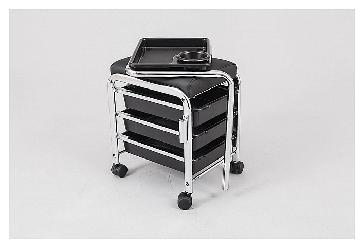 Педикюрная тележка SunDream SD-9005 используется в косметологических центрах, салонах красоты и домашних студиях ногтевого сервиса для размещения инструментов, аппаратов, средств и прочих аксессуаров, рационализации рабочего пространства и создания комфортных условий для мастера и клиента. Модель оснащена 3 выдвижными ящиками и поворотной полкой с подставкой для ёмкости. Каркас выполнен из металла. Особенности: