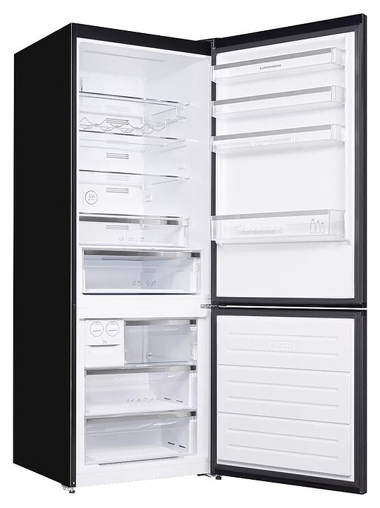 Холодильник Kuppersberg NRV 192 X предназначен для охлаждения, заморозки, кратковременного и длительного хранения пищевых продуктов и напитков на предприятих общественного питания и торговли, в гостиничных комплексах, офисах, а также домашних условиях. Модель оснащена холодильной и морозильной камерами, герметичными дверьми с интегрированными ручками, кабелем питания с вилкой и сенсорной панелью управления с жидкокристаллическим дисплеем. Корпус выполнен из металла с антикоррозийным покрытием и остеклением фронта, внутренняя облицовка – из антибактериального пластика, плоские полки – из стекла, ящики и дверные полки – из прочного прозрачного пластика, винная полка – из металла, полки и ящики декорированы металлической окантовкой. В комплект поставки входят 4 плоские полки, винная полка, 4 дверные полки, подставка для яиц, 2 ящика для овощей и фруктов, 3 ящика для морозильной камеры и форма для льда. Особенности:
