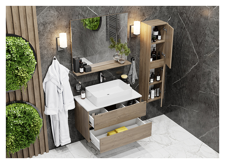 Тумба под раковину Onika ХОУП 85.13 дополнит интерьер ванной комнаты. Благодаря подвесной конструкции модель не занимает много места и облегчает уборку. Тумба оснащена 2 выдвижными ящиками с системой плавного закрывания и интегрированными в фасад ручками. Изделие выполнено из ЛДСП, устойчивой к механическим воздействиям, перепадам температур и высокой влажности. Тумба используется вместе с раковиной KIROVIT Олимпия 560. В комплект поставки входят подвесы для крепления. Особенности: