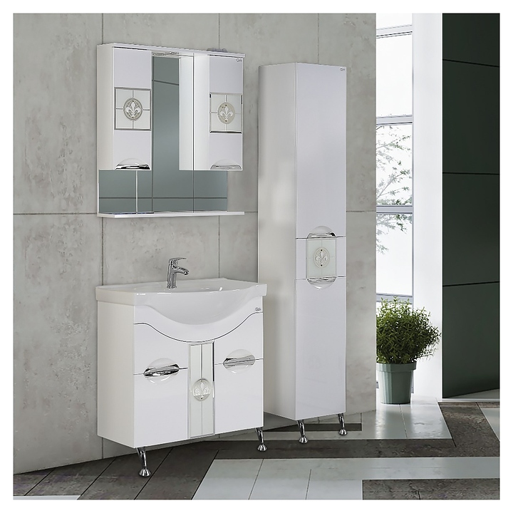 Тумба под раковину Onika ФЛОРЕНА 80.13 дополнит интерьер ванной комнаты. Модель оснащена 2 выдвижными ящиками с направляющими полного выдвижения, 2 распашными дверцами с системой плавного закрывания и ножками, защищающими конструкцию в случае намокания пола. Изделие выполнено из МДФ в пленке, устойчивой к механическим воздействиям, перепадам температур и высокой влажности. Тумба используется вместе с раковиной Cersanit ERICA 80. В комплект поставки входят 2 декоративных и 2 пластиковых ножки. Особенности: