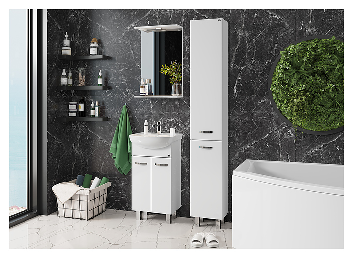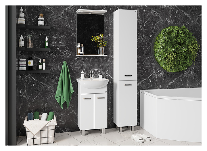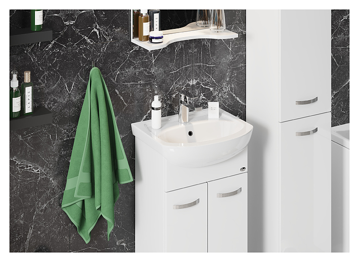 Тумба под раковину Onika КОРАЛЛ 47.10 дополнит интерьер ванной комнаты. Модель оснащена 2 распашными дверьми и ножками, защищающими конструкцию в случае намокания пола. Корпус выполнен из ЛДСП, фасад - из МДФ в пленке, устойчивой к механическим воздействиям, перепадам температур и высокой влажности. Тумба используется вместе с раковиной Оскольская керамика Дора 47. В комплект поставки входят 2 ручки и ножки. Дополнительные характеристики: