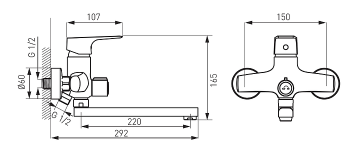 Смеситель для раковины / ванны настенный FERRO TIGA BTG3A хром