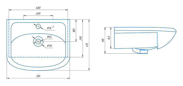 Раковина ROSA УЮТ 500 51х41,5 см, санфарфор