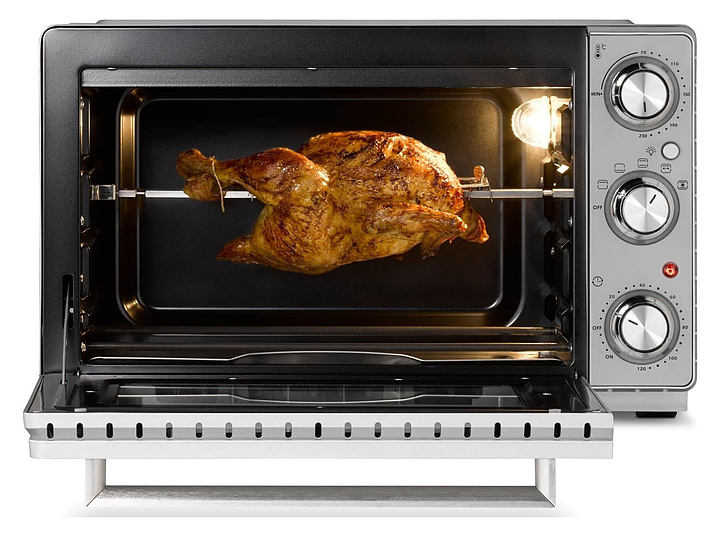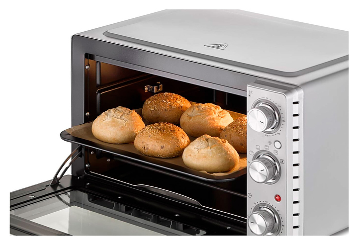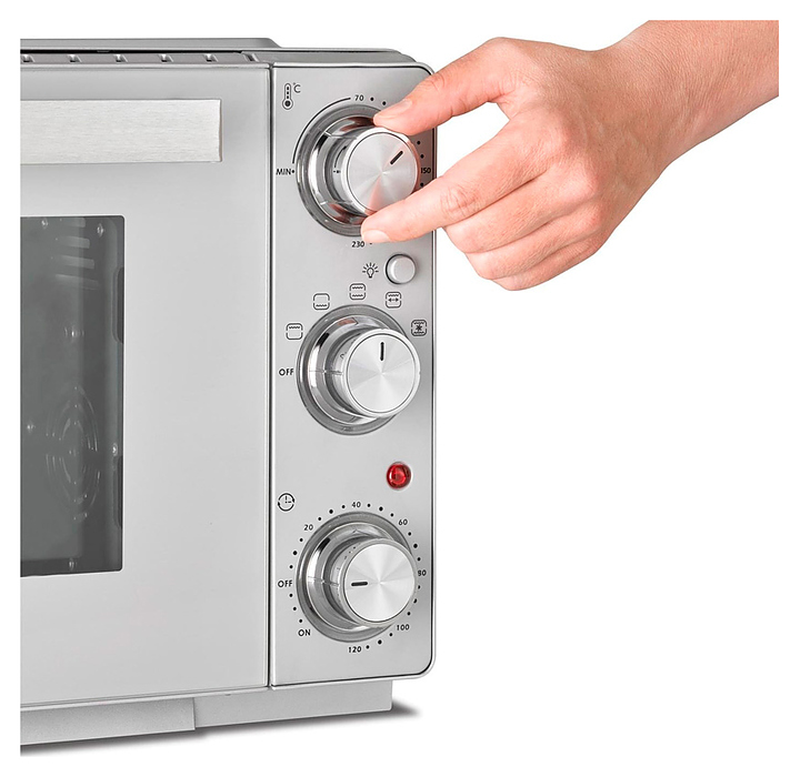 Мини-печь CASO TO 26 SilverStyle предназначена для приготовления и разогрева различных блюд, выпечки кондитерских и хлебобулочных изделий в квартирах, частных домах, кафе и ресторанах. Модель оснащена механическим управлением, внутренней подсветкой и дверцей с двойным остеклением. Корпус выполнен из металла, нагревательные элементы - из нержавеющей стали, внутренняя камера - с антипригарным покрытием. В комплект поставки входят решетка для гриля, вертел, противень с антипригарным покрытием, ручка для решетки и вертела, камень для пиццы и съемный поддон для крошек из нержавеющей стали. Особенности: