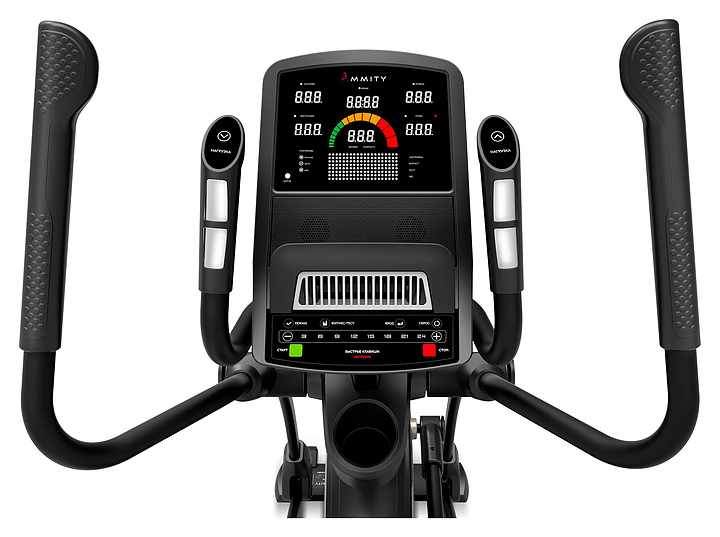 Эллиптический тренажер AMMITY FASHION FE 510 используется для тренировок в домашних условиях. Модель оснащена сенсорными датчиками измерения пульса на неподвижных поручнях, русифицированной консолью управления с 7 LED дисплеем, 2 колесами и 2 износостойкими прорезиненными роликами. Корпус модели выполнен из ударопрочного окрашенного ABS-пластика с матовой поверхностью, поверхность педалей-из термопластичного эластомера, поверхность трека-из алюминия. В комплект поставки входит набор ключей для сборки и соединительный кабель Jack 3,5 мм Особенности:
