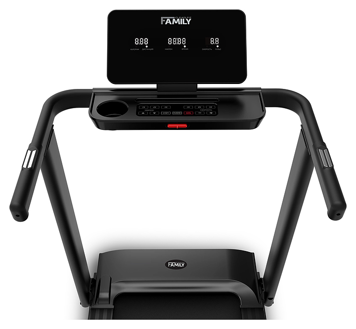 Беговая дорожка FAMILY TM 460A используется для тренировок в домашних условиях. Модель оснащена сенсорными датчиками измерения пульса на поручнях, русифицированной консолью управления с 3 LED дисплеем, 2 колесами и газовым доводчиком EasyDecline™ для облегчения процесса складывания. Корпус модели выполнен из ударопрочного окрашенного ABS-пластика с матовой поверхностью. В комплект поставки входят силиконовая смазка, ключ безопасности, ключ для регулировки бегового полотна, набор ключей для сборки и соединительный кабель Jack 3,5 мм. Особенности: