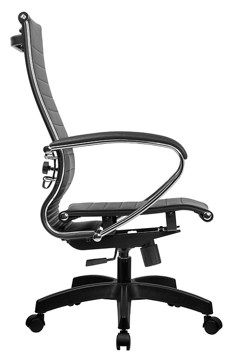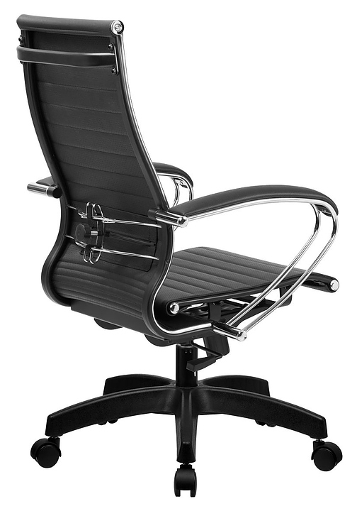 Кресло Метта Комплект 10 предназначено для долгой работы за компьютером на даче, дома, а также в офисах. Модель оснащена низкой, разомкнутой сверху, спинкой и комфотным сиденьем. Сверхпрочный каркас спинки и регулируемый поясничный подпор изготовлены из хромированной стали с полимерным покрытием с хромированным молдингом, обивка сиденья - из перфорированного многослойного тонкого материала NewLether, обивка спинки - из износостойкого перфорированного материала NewLether. Пятилучье в комплект поставки не входит и приобретается отдельно. Особенности: