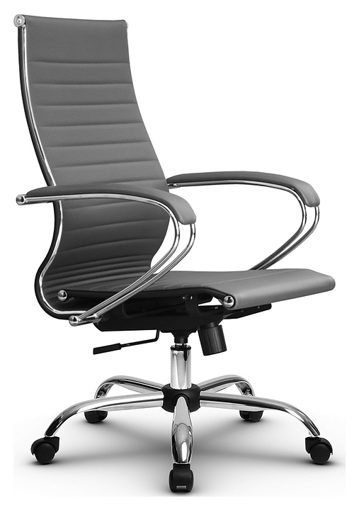 Кресло Метта Комплект 10 предназначено для долгой работы за компьютером на даче, дома, а также в офисах. Модель оснащена низкой, разомкнутой сверху, спинкой и комфотным сиденьем. Сверхпрочный каркас спинки и регулируемый поясничный подпор изготовлены из хромированной стали с полимерным покрытием с хромированным молдингом, обивка сиденья - из перфорированного многослойного тонкого материала NewLether, обивка спинки - из износостойкого перфорированного материала NewLether. Пятилучье в комплект поставки не входит и приобретается отдельно. Особенности: