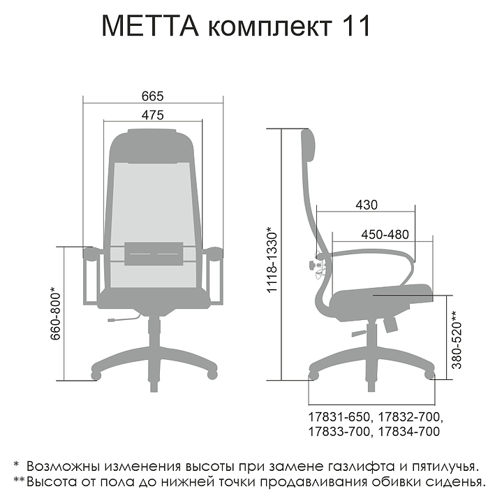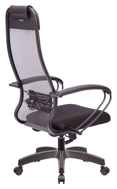 Кресло Метта Комплект 11 предназначено для долгой работы за компьютером на даче, дома, а также в офисах. Модель оснащена высокой замкнутой сверху спинкой с мягким накладным подголовником и мягким комфортным натяжным сиденьем. Сверхпрочный каркас кресла и регулируемый поясничный подпор изготовлены из стали с износостойким полимерным покрытием черного цвета, обивка - из износостойкой обивочной сетчатой ткани. Пятилучье в комплект поставки не входит и приобретается отдельно. Особенности:
